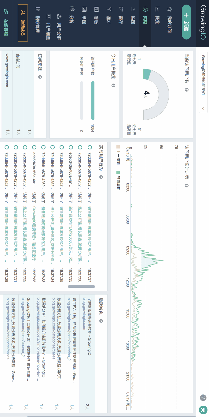 最后介绍下我曾经设计的 GrowingIO 实时功能,据后台统计,是当时 GrowignIO 所有功能中停留时长最长的一个,可能是很多人就挂在当前页面不走了吧...