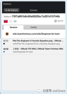 在用户细查上,会不断更新每个有新动作的用户 并在旁边读秒,显示最后更新情况。点击该用户可查看详情,包括Session内动作和用户详情。这里最多包括6h前的用户活动